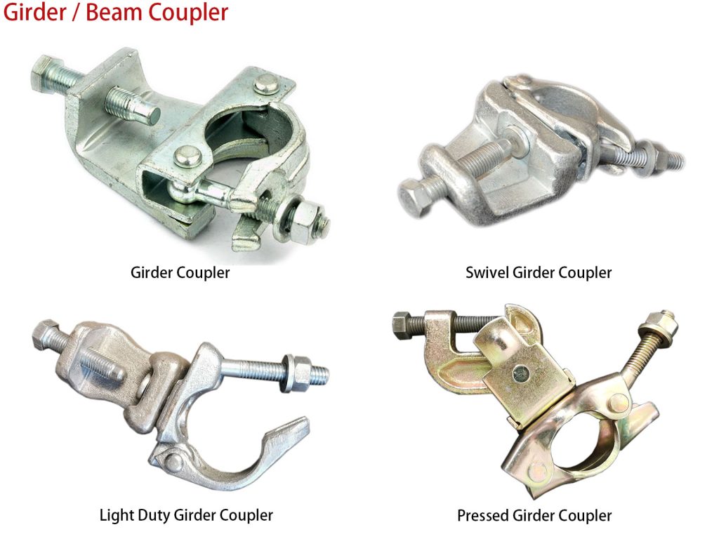 Girder coupler are also known as gravlock couplers, beam couplers, and girder clamps. These beam coupler must be used in pairs to connect 48.3 mm scaffolding tubes to structural beams and are used to extend or align girders within a structural frame.